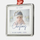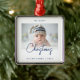 Minimal Photo Baby's First Christmas Navy Blue Metal Ornament