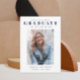 A simple, clean photo graduation announcement with invitation details on the back. This design features large graduate type and student name above a portrait photo of the grad.
