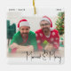 Celebrate your first wedded Christmas with this modern minimalist photo keepsake ornament. The text reads "Married & Merry" in trendy black handwriting script. Easily replace the sample image with your favourite photo, and add your names and the year at the top. A white gradient screen helps make the text overlay pop.