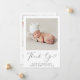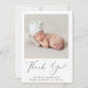 Minimal baby boy or girl birth announcement and thank you card featuring your newborn's photo and "Thank You" in an elegant script with a heart swash. Personalize with his or her name, arrival date and birth stats in simple modern typography. On the reverse side, add an additional photo and your customized announcement and thank you message.