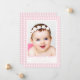 Minimal Pink Gingham Check Pattern photo Birth Announcement