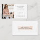 The front of the business card features a half photo layout with the company name, employee's name/title, and contact information. Simple blush peach pink framed nameplate features the company name on the front and backside of the business card. You can customize the text size, font, colours, and background colour to suit your own personal preference.
