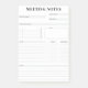 A minimal black and white meeting notes planner for your home office or professional workplace. Features space for a project name, dates, topics to discuss, a to do list with responsible people and deadlines and space for your more notes.
