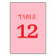 This minimal red and pink retro wedding table number card features a clean and stylish design. The soft pink background pairs with bold red text for a modern retro look. The simple layout keeps the table number clear and easy to read from a distance.