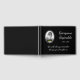 This elegant funeral/memorial sympathy guestbook features the message "We will always remember the joy you brought us.", and the personalized name and birth/death dates of the individual who has passed on. It also features a custom photo. It could be used to record condolences for the relatives and friends of somebody who has recently passed away.