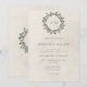 This design features a simple, soft watercolor green and rust eucalyptus wreath around the couple's initials, on a vintage distressed cream background. It's delicate, elegant, and understated. Created by Simply Farmhouse Press.