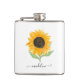 Minimal Rustic Sunflower Personalized Name Script Hip Flask