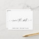 For all those who want a simple yet elegant and modern Save the Date postcard, this one is for you! Featuring black script calligraphy and the trail off that makes it extra chic, this wedding announcement is for the minimalists and lets the occasion do all the speaking. Mail it out to your prospective wedding guests with a custom message and your personalized return mailing address.
