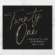 Modern minimalist 21st birthday sparkling wine label features stylish faux gold foil number handwritten script Twenty one and your party details in classic serif font on black background colour, simple and elegant, great surprise adult milestone birthday for men and women.