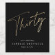 Modern minimalist 30th birthday party invitation features stylish faux gold foil number handwritten script Thirty and your party details in classic serif font on black background colour, simple and elegant, great surprise adult milestone birthday invitation for men and women. the black background colour can be changed to any colour of your choice.