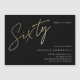 Modern minimalist 60th birthday party invitation features stylish faux gold foil number handwritten script Sixty and your party details in classic serif font on black background colour, simple and elegant, great surprise adult milestone birthday invitation for men and women. the black background colour can be changed to any colour of your choice.