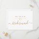This simple and modern white bridesmaid proposal card is the perfect way to ask your closest friends to stand by your side. Featuring an elegant design with an adorable gold heart on the front, it’s minimal yet meaningful. The card also offers space for custom text on the back, adding a personal touch to your proposal.