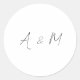Minimal Script Monogram Boho Wedding Black White Classic Round Sticker