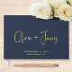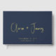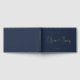 This minimal and elegant dark navy blue wedding guest book features your choice of real gold, silver or rose gold foil, your names in a chic modern script, your wedding date and location in classic serif typography and your personalized title on the spine.