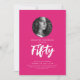 Minimal Script Photo 50th Birthday Party Hot Pink Invitation