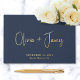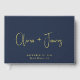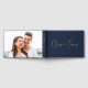 This minimal and elegant dark navy blue wedding guest book features your choice of real gold, silver or rose gold foil, your names in a chic modern script, and your wedding date and location in classic serif typography. You can personalize the title on the spine and add your favourite photo on the back.