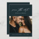 A romantic, simple photo save the date card featuring beautiful script calligraphy, horizontal photo and minimal text on the front. The back has a vertical photo with wedding website. Click the edit button to customize this design.