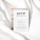 Presenting our minimalist wedding RSVP card, a blend of understated charm and elegant functionality. The card captures attention with its bold, clean serif font, spelling out 'RSVP' with a commanding presence. Below, the due date is artfully written in an elegant script, adding a touch of grace and sophistication. The back of the card offers a delightful surprise – a space for your chosen photo, making each response card a memorable keepsake of your special day. This card not only simplifies the response process for your guests but also carries the essence of your love story, beautifully encapsulated in a modern, minimalist design.