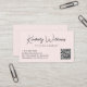 Professional and elegant light blush pink business card featuring your name in a chic modern signature script -- your name becomes a work of art as well as a personal or professional brand. Add your company, title and contact information in simple typography and input your website's URL address to create a scannable QR code. On the back, customize additional text or leave blank.