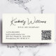 Professional elegant light cream business card that features your name in a chic modern signature script -- your name becomes a work of art as well as a personal or professional brand. Add your company, title and contact information in simple typography and input your website's URL address to create a scannable QR code. On the back, customize additional text or leave blank.