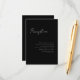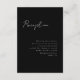 3.5x5 minimal script, reception enclosure card. White text on a black background. Part of a wedding collection.