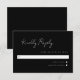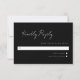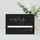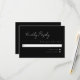 3.5 x 5 minimal script response card. White text on black background. Part of a wedding collection.