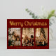 Minimal Script Three Photo Red Merry Christmas Foil Holiday Card
