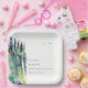 I was honestly hoping the plate would be a little sturdier for the price. As far as the image goes, it is just lovely. I had a hard time deciding between square and round, but went with the square because the design fit better. If the round plate’s design would have a more rounded edge at the sides of the plate, I would have taken that one…only because it is so much easier to find round charger plates or mats to go underneath. My opinion only!
