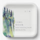 Minimal Soft Pine Tree Mountain Landscape Wedding Paper Plate