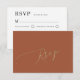 This terracotta RSVP card enhances your wedding stationery with a combination of timeless typography and a digital response option. The minimalist layout features classic serif text and a stylish script ‘RSVP’ accent for a refined sophisticated look. Guests can easily mark their attendance or scan the QR code for convenient online RSVP. This reply card is suitable for formal modern or classic weddings and coordinates beautifully with luxury wedding invitation suites.