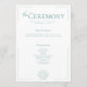 Sleek, sophisticated, and effortlessly elegant — this modern wedding program ceremony card is perfect for the couple who loves timeless design with a contemporary twist. Featuring soft turquoise aqua text on a clean white background, the layout is framed by a thin openwork border that adds just the right touch of detail. The couple's first names take centre stage, drawing the eye before guiding guests to the event details in a minimalist modern font. A simple line art seashell adds a touch of coastal charm. Created by Simply Farmhouse Press.
