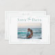 Sleek, sophisticated, and effortlessly elegant — this modern wedding save the date card is perfect for the couple who loves timeless design with a contemporary twist. Featuring soft turquoise aqua text on a clean white background, the layout is framed by a thin openwork border that adds just the right touch of detail. The couple's photo and names take centre stage, with event details on the back in a minimalist modern font. on the back, a line art seashell adds a coastal touch. Created by Simply Farmhouse Press.