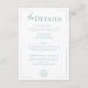 Sleek, sophisticated, and effortlessly elegant — this modern wedding details enclosure card is perfect for the couple who loves timeless design with a contemporary twist. Featuring soft turquoise aqua text on a clean white background, the layout is framed by a thin openwork border that adds just the right touch of detail. The event details appear in a minimalist modern font. At the bottom, a single line art seashell adds a subtle coastal touch. Elegant and understated, this design will impress. Created by Simply Farmhouse Press.