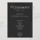 Sleek, sophisticated, and effortlessly elegant — this modern wedding program ceremony card is perfect for the couple who loves timeless design with a contemporary twist. Featuring crisp white text on a clean charcoal black background, the layout is framed by a thin openwork border that adds just the right touch of detail. The couple's first names take centre stage, drawing the eye before guiding guests to the event details in a minimalist modern font. A simple line art seashell adds a touch of coastal charm. Created by Simply Farmhouse Press.