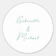 Celebrate your special day with our elegant teal script wedding stickers! These personalized stickers are perfect for adding a touch of sophistication to your wedding favours, thank you notes, or even as a unique seal for your wedding invitations. The simple design features the couple's names in an elegant teal script on a clean white background, creating a timeless look. These high-quality stickers are durable and easy to apply, ensuring that your message stays put. Order yours today and add a personalized touch to your unforgettable event!