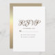 Simple, minimal, typography, pure white wedding RSVP card, with modern, metallic shiny, ombre gold back side.