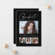Clean, minimal, modern and elegant "4 photo" graduation announcement cards, featuring design elements of modern text with a unique calligraphy ink script. The graduate's photos are accented with a delicate & minimalist gradient boarder. The back of the card offers personalized text spaces for information about your graduation. Black & White or easily customize the background to match your school's primary colour or any colour of your choice. Perfect for the high school, college and university grad student seniors.