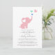 Minimal Virtual Baby Shower Pink Girl Elephant Invitation