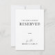 Clearly mark reserved seating at your ceremony with this Minimal Wedding Family Reserved Row Tag. Designed in a simple modern style, this chair tag is ideal for saving seats for the family or bridal party during the wedding ceremony. It’s a practical and elegant way to organize your front rows. Please note: this tag does not come with a pre-punched hole, so you will need to add one if you plan to hang it.