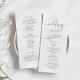 Elegant, modern, minimalist, simple wedding program with unique hand drawn love couple birds and trendy calligraphy script.