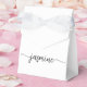 Girly Feminine Simple Minimalist Clean White Monogram Name Signature Script Custom Personalized Favour Box. This design featuring your first name in a pretty hand lettered style swash tail font signature typography (or calligraphy) in black on white background. These girly feminine gift boxes great for handing out, gifts, guest gifts and treats during an upcoming birthday party, baby shower, BBQ, wedding reception, bachelorette party, sweet 16 birthday, bridal shower, anniversary and more.