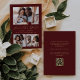 Minimalist 3-Photo Collage QR Code Burgundy Gold Save The Date