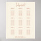 Minimalist Boho Terracotta Text on Cream Script 9 Table Wedding Seating Chart Rustic earthy colours and an informal script for the header and couple’s names and wedding date at the bottom. Fully customisable. Easily personalise with your table numbers or table names and guest names, and change the background and text Colours if you wish via the edit further option.