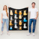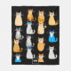 Cozy up in style with this whimsical cat collage blanket! Featuring a playful grid of colourful, minimalist cat illustrations, this design is perfect for cat lovers who appreciate modern art and bold patterns. The cats, depicted in a mix of vibrant blues, warm oranges, and neutral greys, pop against the sleek black background, making this blanket a charming statement piece. It’s ideal for snuggling on the couch, adding flair to your bedroom decor, or gifting to feline enthusiasts. The art design employs a flat, geometric illustration style, emphasizing clean lines and contrasting shapes. Each cat is uniquely designed with simple, expressive details that showcase various breeds and personalities. The black background enhances the vibrant colour palette, while the minimalist “MW” logo adds a sophisticated, branded touch to the overall composition. Replace the initials in the monogram with your desired initials..