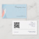 Minimalist QR code business card design. This modern business card features an abstract pattern with a clean, minimalist aesthetic. The colour palette consists of pastel shades, specifically a soft coral and a delicate light blue, creating a visually appealing and calming effect. This card is ideally suited for small business owners such as a hair stylist, a designer, or a makeup artist. The QR code integration allows for easy sharing of contact information and online profiles, perfect for networking and client acquisition in the beauty and design industries. The simple yet stylish design ensures a professional and memorable first impression.