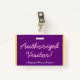 This minimalist badge design features the message "Authorized Visitor!", and a customizable company name or other custom message. A badge like this could be used to indicate that a visitor or guest at a workplace is allowed to be there. [~Z0000307]