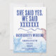 Design features to blue sea hues. Simple but quite modern style. This bachelorette party invitation template combines three different fonts for more dynamic look. In case you need customization for the design be free to contact me : szdesigns2021@gmail.com