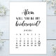 Minimalist Be My Bridesmaid Calendar Proposal Invitation