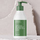 a simple minimalist beauty label in green and white. Contains areas for product usage instructions, ingredients, and your contact information