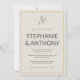 Add a touch of elegance to your wedding suite with this monogrammed beige and grey wildflower invite, designed to complement minimalist and nature-inspired styles. The invite features a beige background and dark grey text. At the top, this invitation features a beautiful wildflower between the bride and groom's initials. The invitation's text is inside a gold frame.